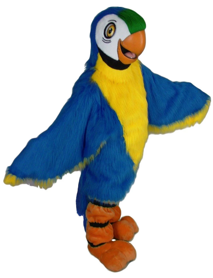 Mascot Costume includes Head, Body Jumpsuit, Bird Leggings, and Feet. The ends of the wingtips/fins have a Velcro opening. You may customize the colors of each part separately should you wish to create a custom mascot using the available colors from the chart above. So there will be no strain on the neck, the head of the mascot will rest on the shoulders and has straps that you put your arms through for added support.