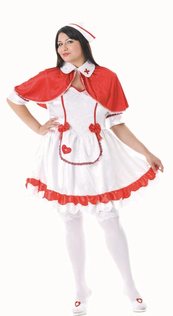 Sexy Medic Costume Includes White Satin Dress with Red Details and Zip Back Closure,