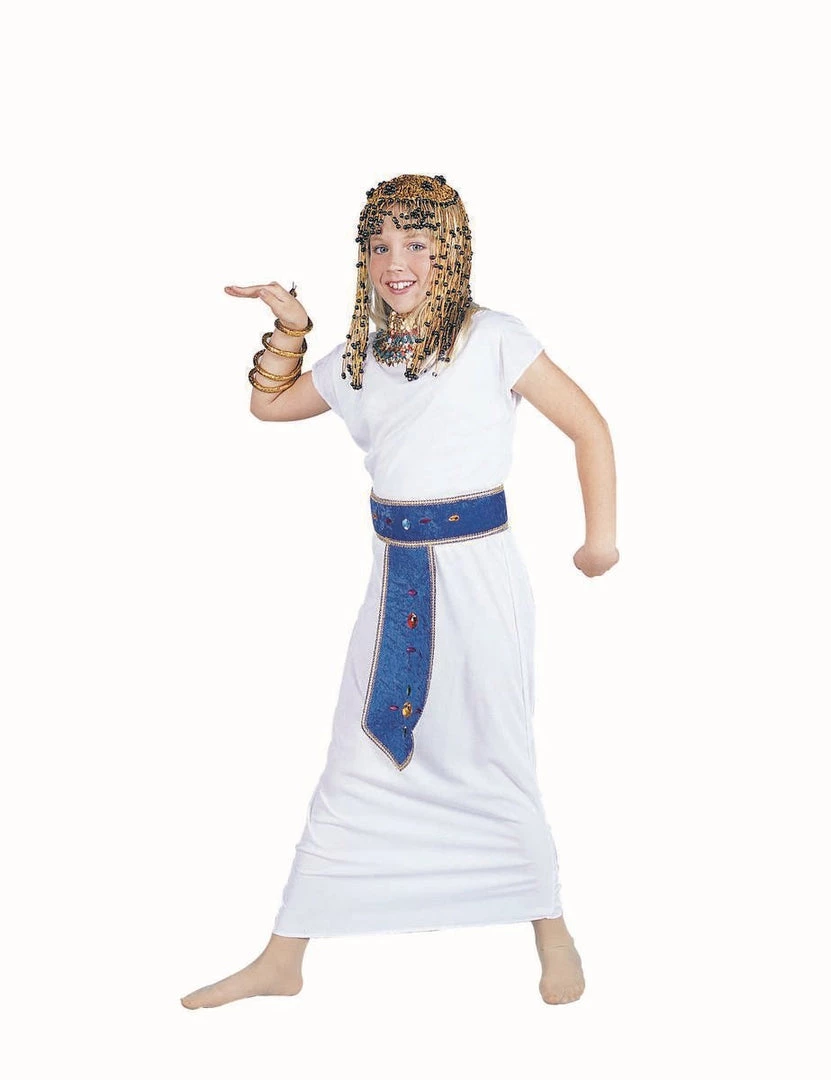 Costume Includes Long White Sleeveless Gown and Attached Blue Belt. Headdress & Snake Armband Not Included.