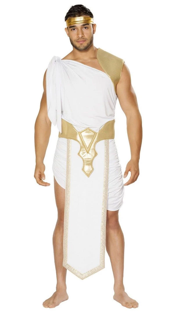 Greek God Costume Includes Scrunched Tunic with Shoulder Pad, Padded Panel Wrap, & Headband