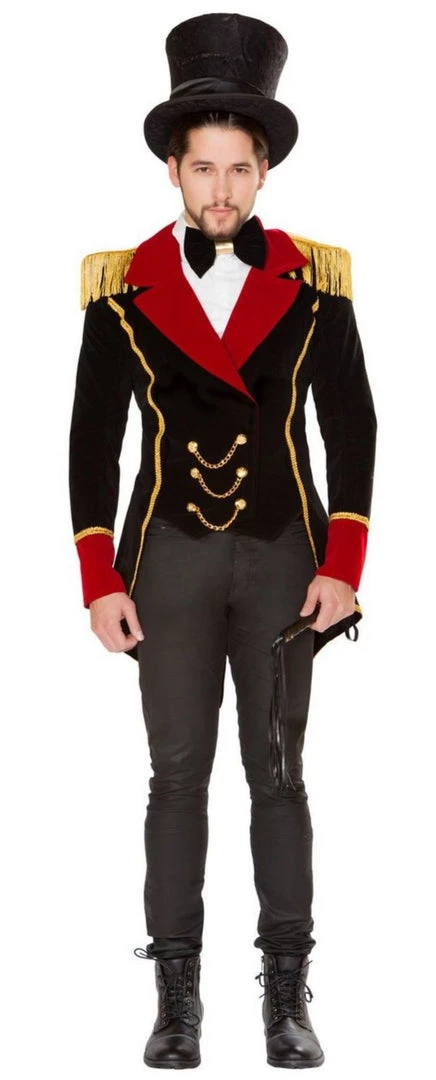 Ringmaster Includes Jacket with Button & Chain Detail, Fringe Shoulder Pads, Bow Tie & Whip. *Top Hat sold separately, not included. A